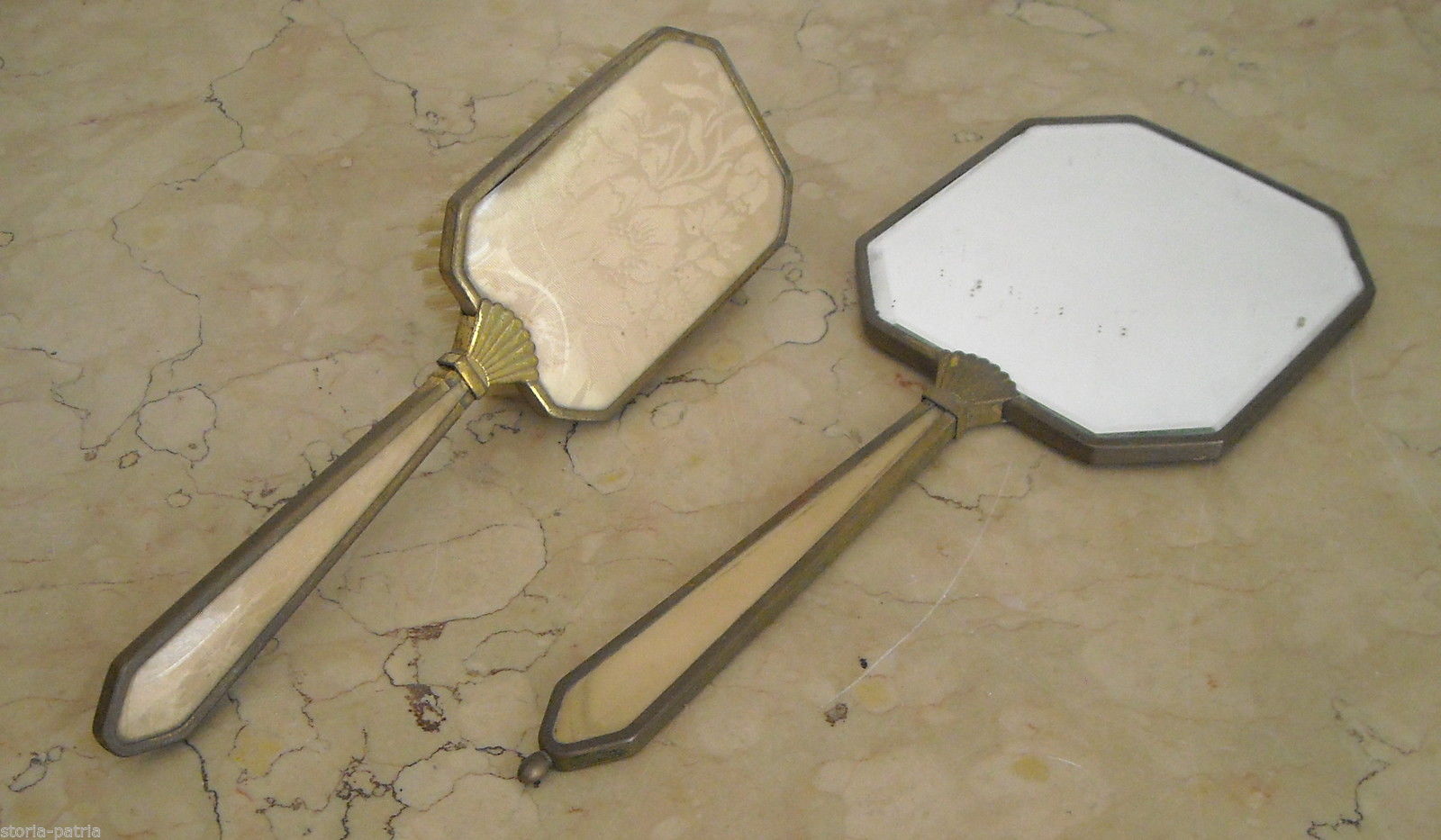 Modernariato, Cosmesi, Spazzola E Specchio Per Toilette, Decorativi Oggetti d'Epoca