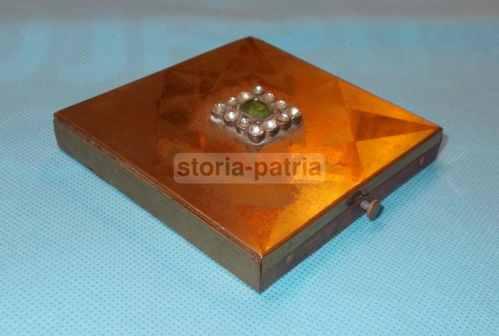 Astuccio Da Collezione, Metallo Dorato, Coperchio E Specchietto, Decori Geometrici