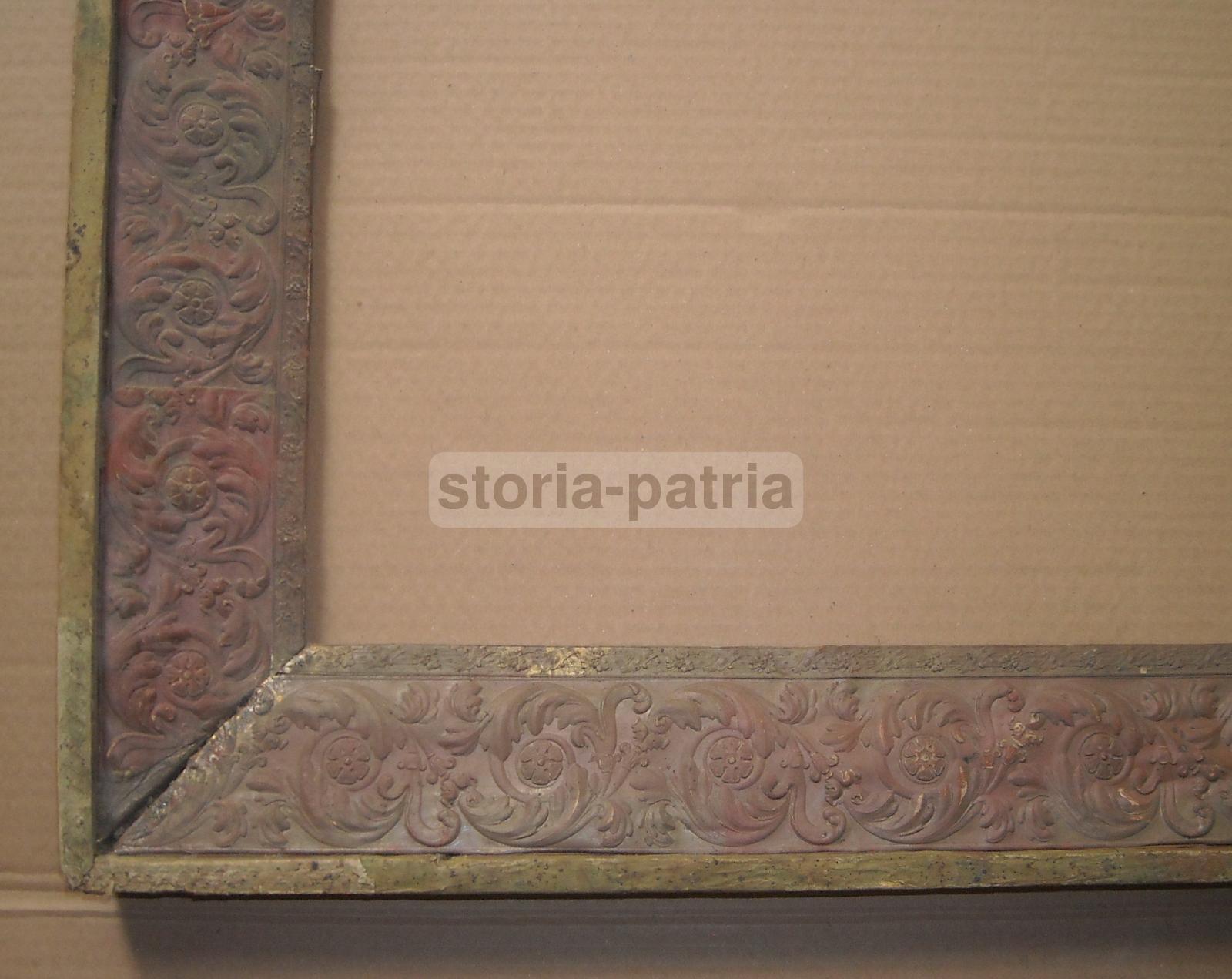 CORNICE D'EPOCA Interessante cornice,con la superficie laccata in colore chiaro ed elegantemente zigrinata, e con un sottile filetto ...
